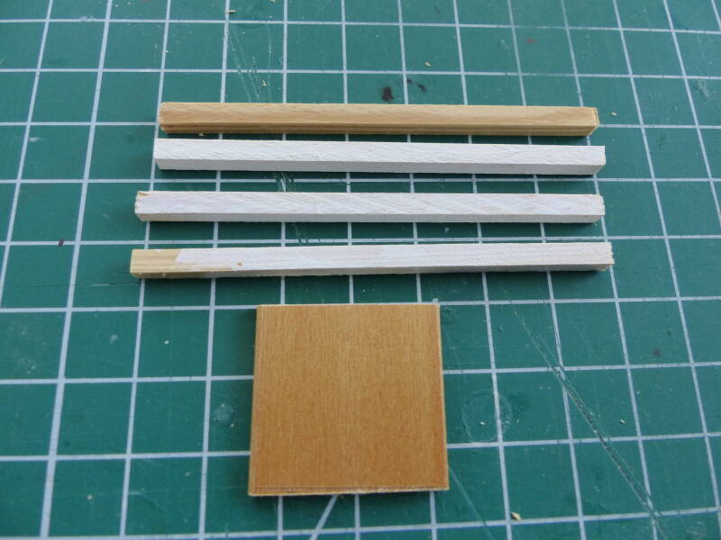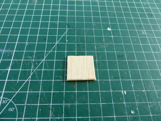 Foto 1. Zaag van het linde hout een plankje van 2,9cm breed en 4,5cm lang,