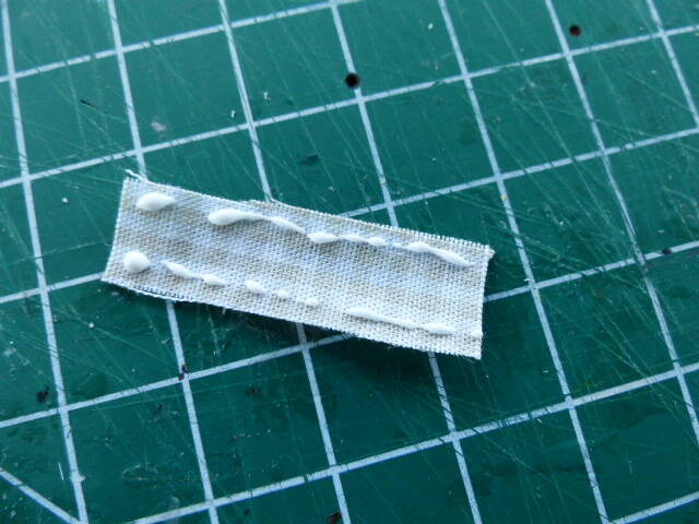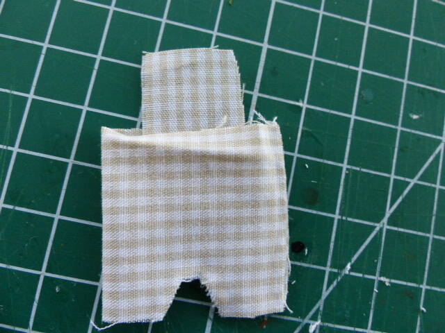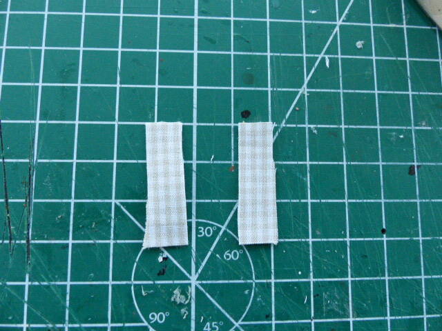 Knip van een lapje stof 6,5cm lang en 3,5cm breed uit. En 3,4cm lang en 2cm breed. En 2cm bij 3cm.