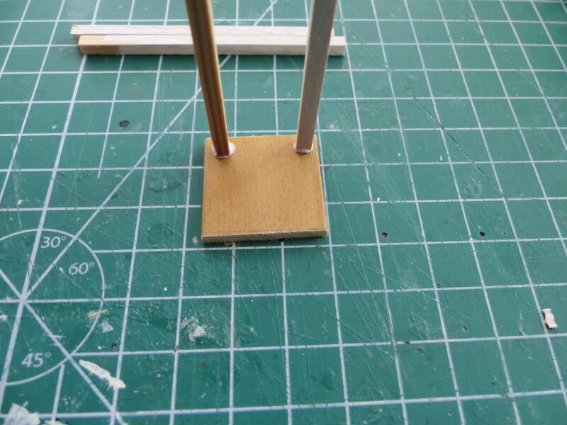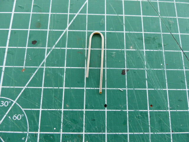 Foto 2 ; Knip 3x 3cm af van het roerstokje en lijm deze straks op de grond bogen.
