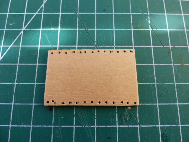 Foto 3. Boor nu aan elke lange kant 13 gaatjes. Let op de dikte zodat je draad er goed door heen gaat maar ook niet te groot.