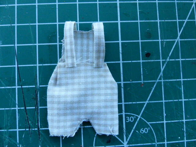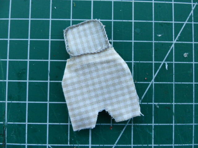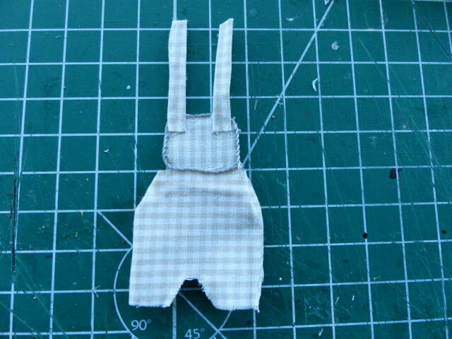 Foto 2. Lijm het borstlapje vast aan het broekje.