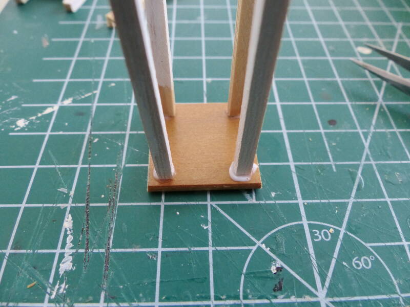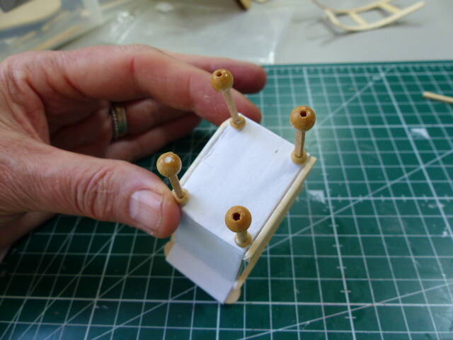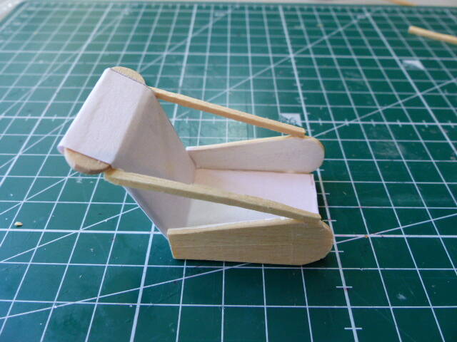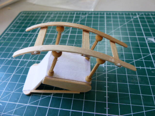 Foto 12; Stoeltje op zijn kop zetten en lijm de boogjes erop.