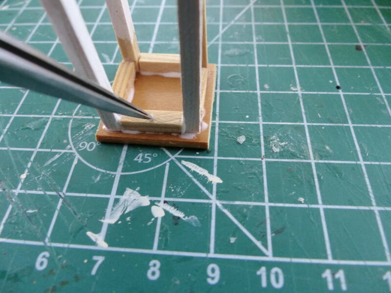 Foto 10; Lijm de lucifers stokjes op de leuningen.