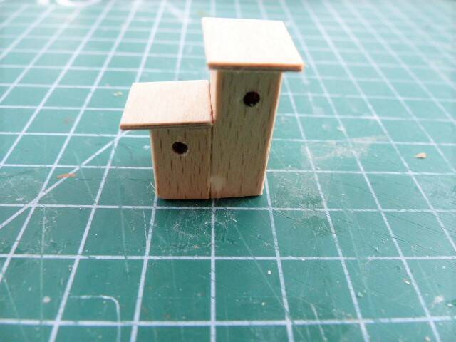 Foto 5 : Zaag 2x 1,3cm bij 1.5cm uit voor de dakjes of iets groter net wat je leuk vind.