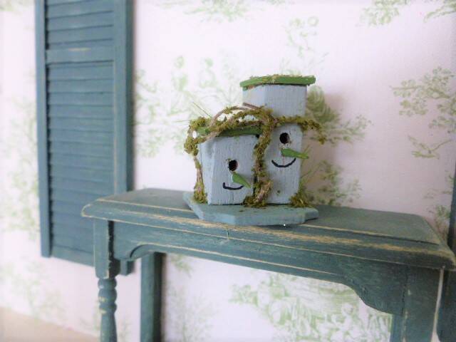 Benodigdheden: Lolly stokjes, hout 2mm dik, boortje 4mm, 2x cocktail prikker, tacky lijm, verf en wat groen spul of sneeuw.