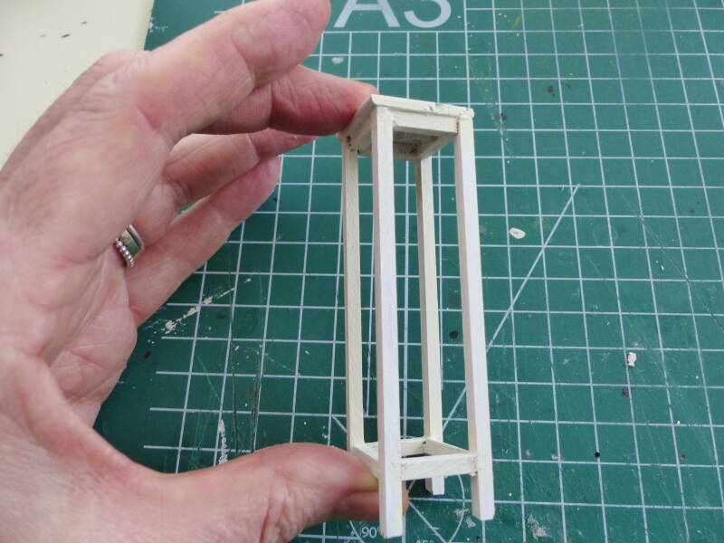Foto 6. Plaats de onderste 4 stukjes 1cm van de grond af. Laat alles goed drogen en verf in de gewenste kleur.